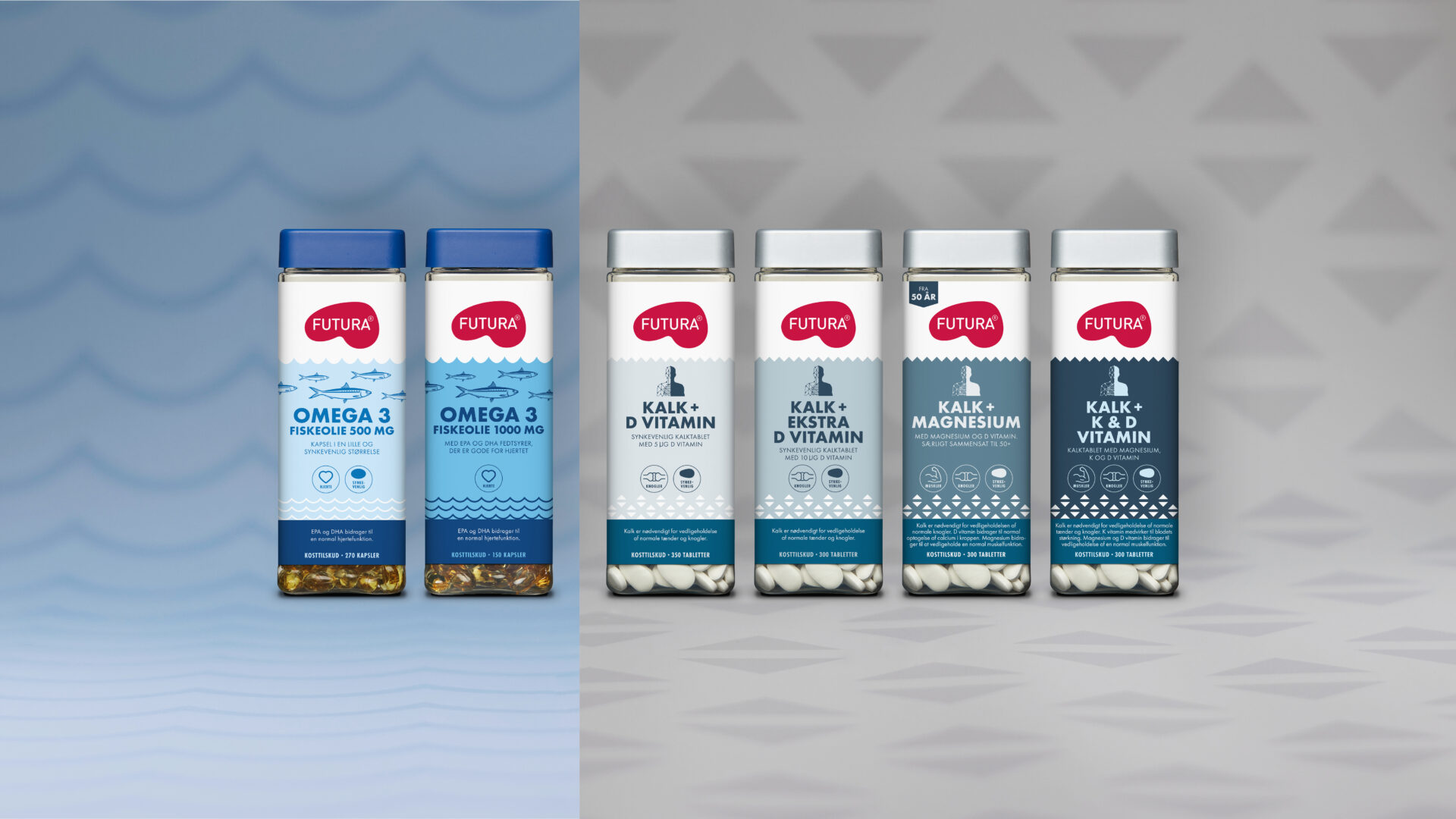 Futura kosttilskud er baseret på naturens egne kilder til kalk og omega-3. Vores produkter bygger på både ny og gammel viden om naturens gavmildhed, når det gælder kilder til gode næringsstoffer. Så selvom god mad tilberedt med kærlig hånd aldrig kan erstattes, kan man godt vælge at supplere sin kost med et eller flere tilskudsprodukter.